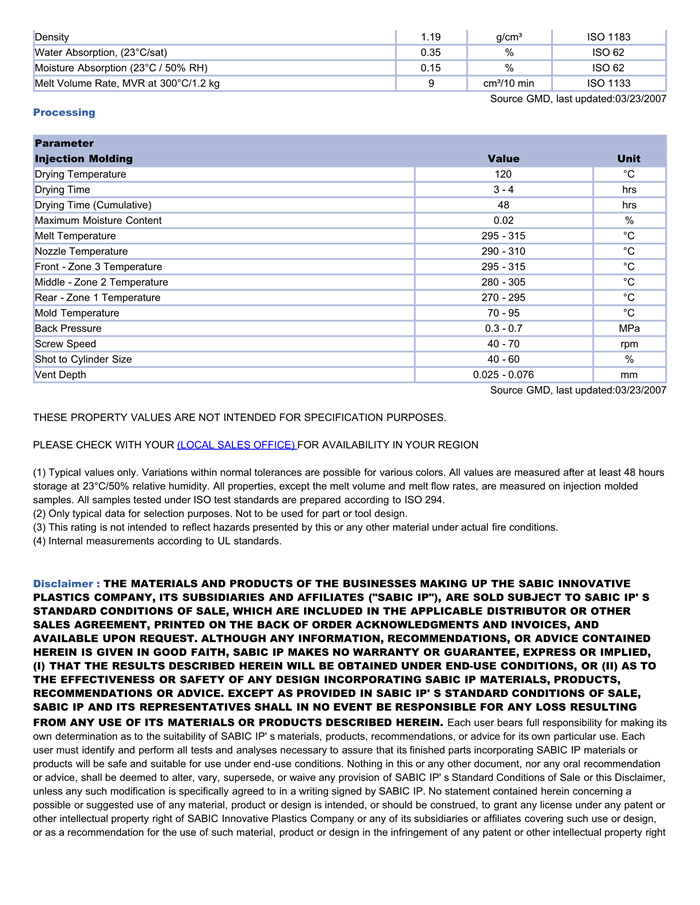 应用范围:产品描述Lexan* EXRL0405 polycarbonate (PC) siloxane copolymer resin is a high viscosity developmental injection molding (IM) grade with good processability, offering opportunities for shorter IM cycle tim