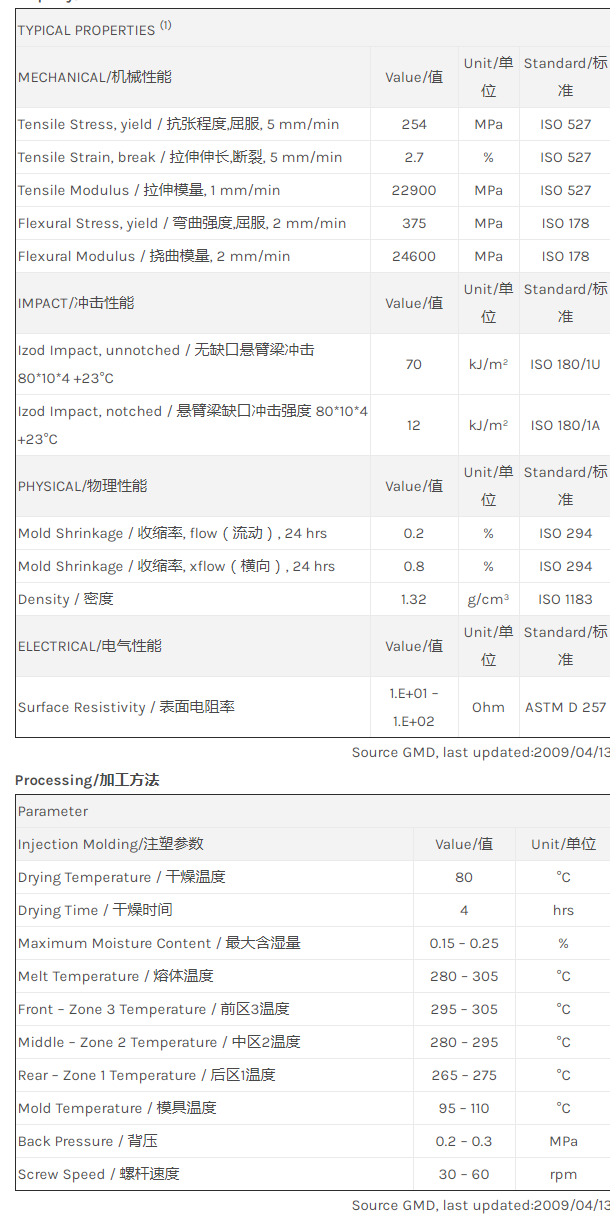 应用范围: 产品描述 LNP Thermocomp RC008ESS物性表 “LNP THERMOCOMP RC008ESS是一种聚酰胺66(尼龙66)材料,含有的填充物为碳纤维增强材料,加工方式为:注射成型。 LNP THERMOCOMP RC008ESS的主要特性有: 通过ROHS认证” LNP* THERMOCOMP* RC008ESS is a compound based on PA6