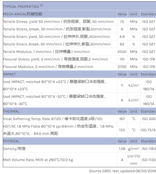 应用范围:产品描述NORYL PPO 8570HS物性表8570HS is a compounded PPO* concentrate with polystyrene